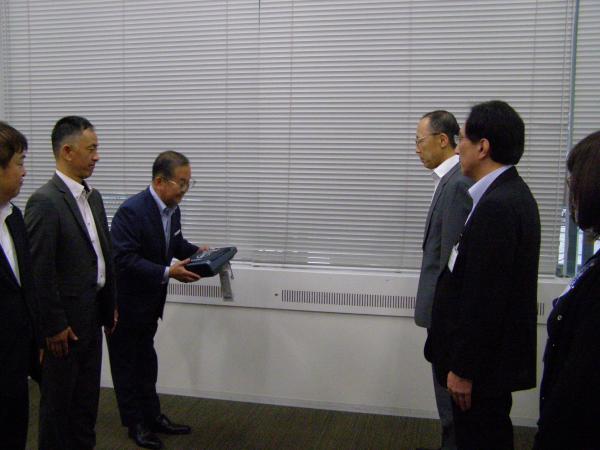危機管理局を訪問し、上山危機管理監兼危機管理局長にAEDを手渡しました。
